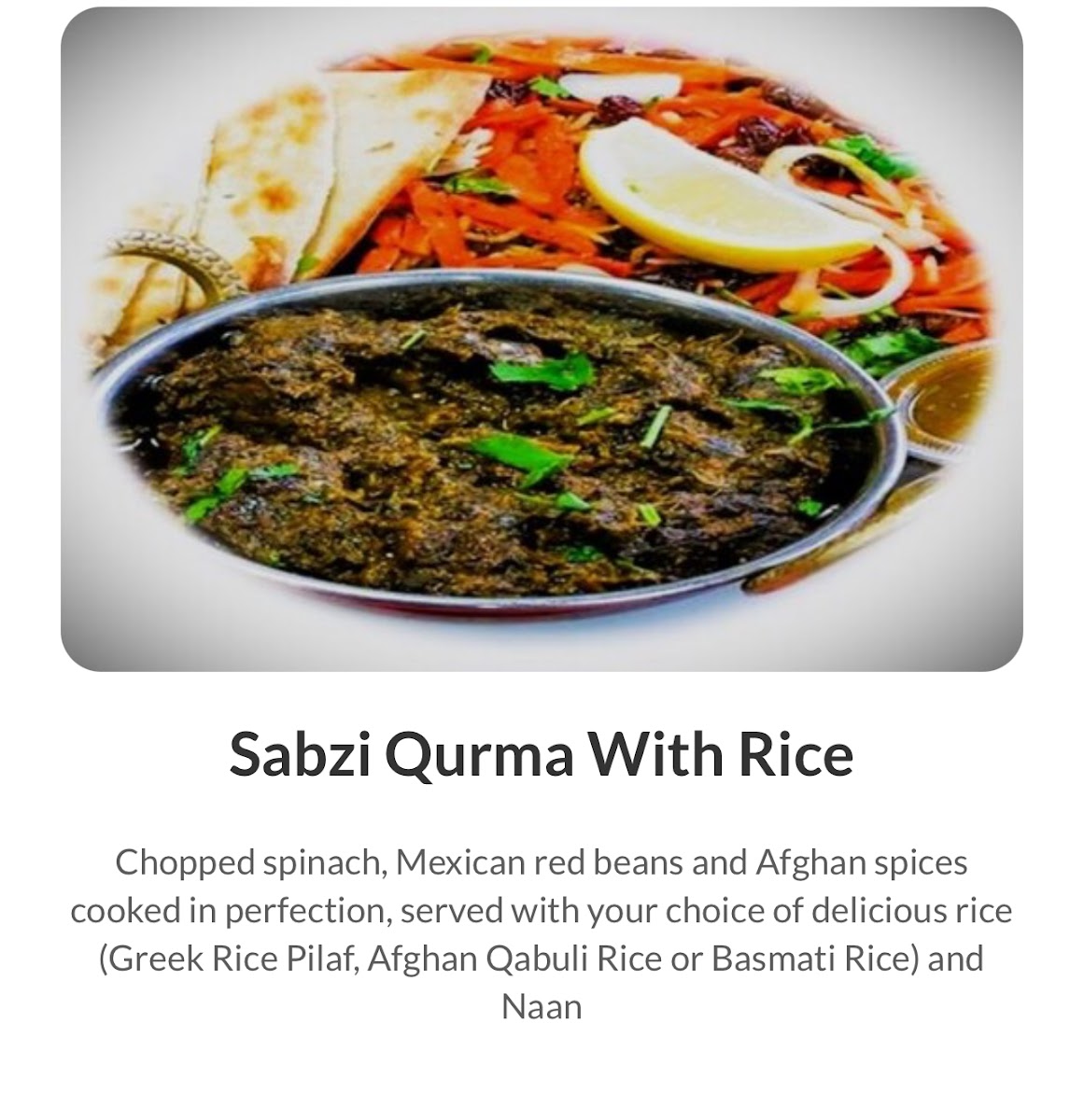 The appetizers are a must-try, featuring delightful Veggie Samosas and crispy Pakoras, each bursting with authentic spices and served with homemade sauces. The heart of the menu is its Afghan selections. Notable dishes include the tender Lamb Qabuli Palaw, richly garnished with raisins and carrots, and the expertly grilled Lamb Seekh Kabab, both paired with your choice of fragrant rice or warm Naan.